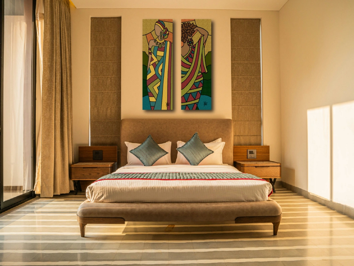 The gallery wrapped canvases feature a thick, archival-grade, poly-cotton mix canvas hand-stretched over solid-wood frames. They are ready to hang with saw tooth hangers or hanging wires in the back.