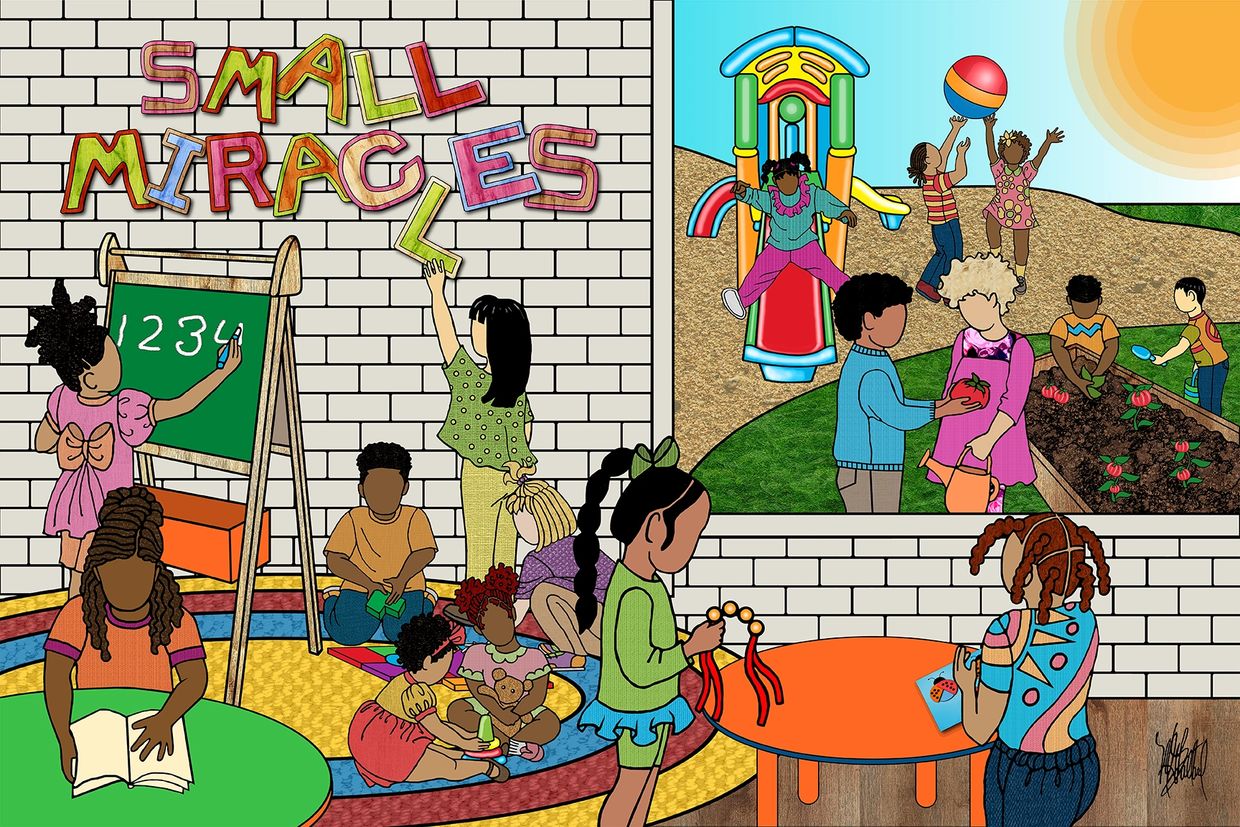 This year, in recognition of their 60th anniversary, I did a piece of art titled “Small Miracles” that depicts the many ways children learn through their Early Head Start and Head Start programs. I used the piece as their annual report cover.